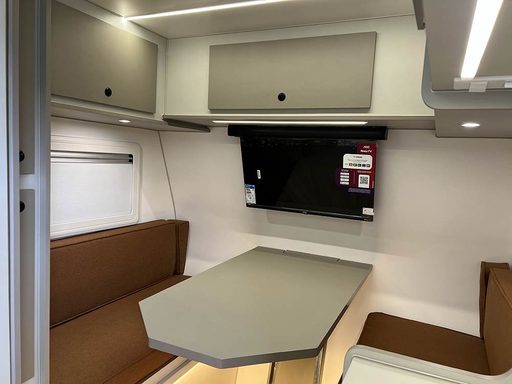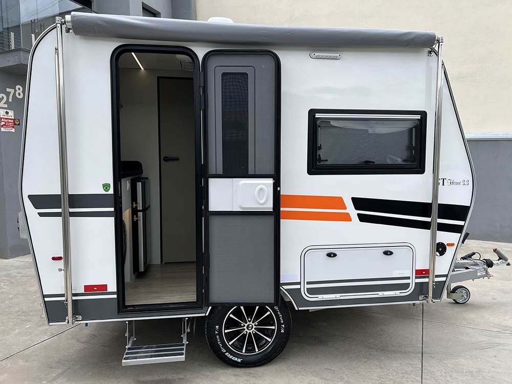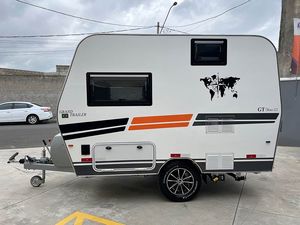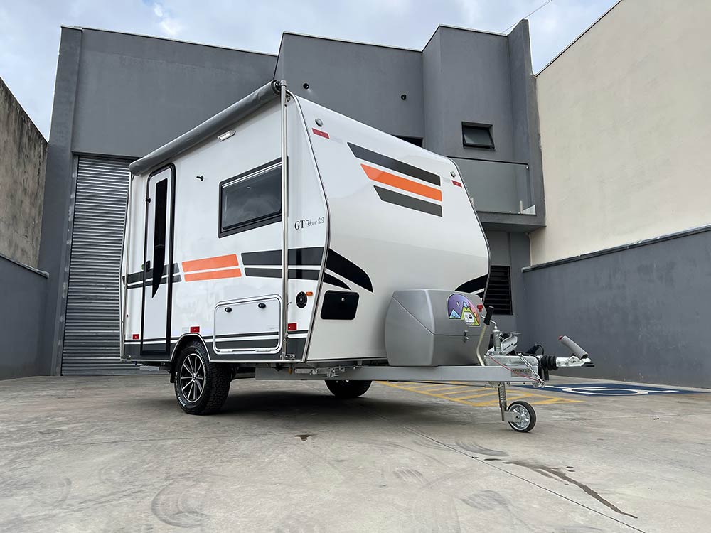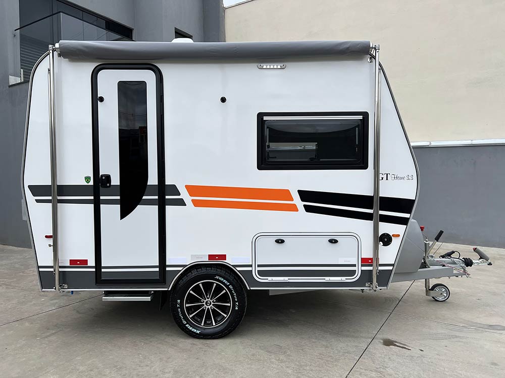 O GT Home 3.3 é um trailer compacto e completo, ideal para quem procura conforto e autonomia em qualquer viagem. Projetado para 2 pessoas, oferece sala para até 4 durante o dia e transforma-se numa cama de casal confortável à noite.