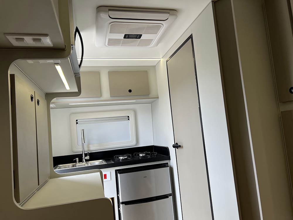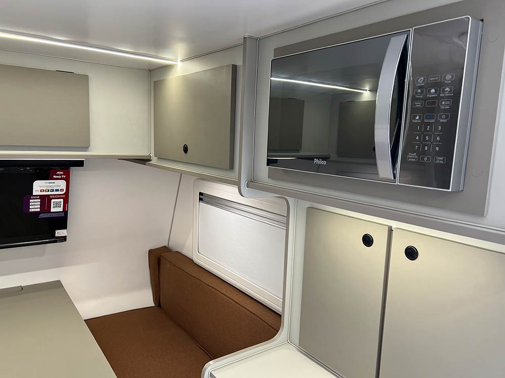 Conta ainda com painel solar de 435W, bateria de lítio de 314Ah, grandes reservatórios de água e sensor de gás, garantindo segurança, independência e tranquilidade.
